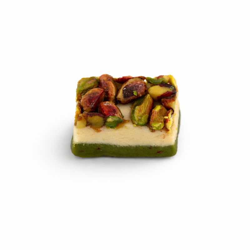 راحة مربعة فاخرة من ماركة الكور، غنية بطبقة كثيفة من الفستق الحلبي الكامل، ومقدمة بشكل قطع مربعة مغلفة فردياً لتضمن الطراوة والنظافة وسهولة التقديم. مذاق شرقي أصيل يجمع بين الطراوة والنكهة العالية للفستق الحقيقي.