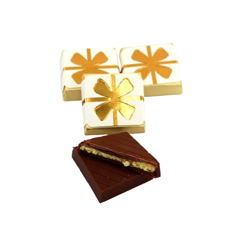 شوكولا فاخرة من ماركة لي تأتي مغلفة بتصميم أنيق يشبه الهدية الذهبية، مما يجعلها مناسبة جداً للضيافة والمناسبات. تحتوي كل قطعة على حشوة كريمية ناعمة تمنح طعماً متوازناً يجمع بين الشوكولا الغنية والقوام الخفيف للحشوة.