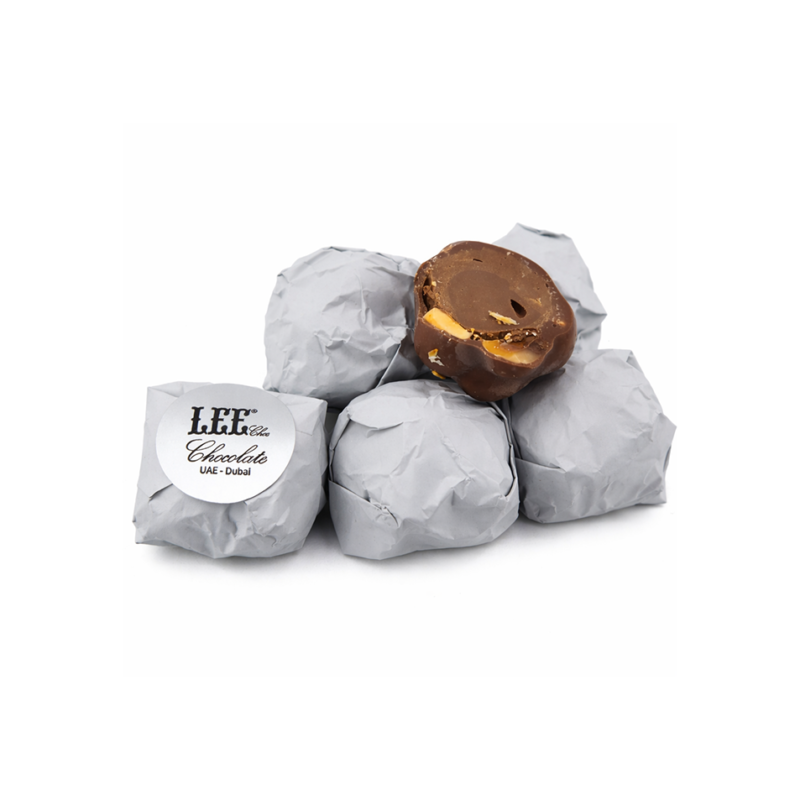 Luxurious dark chocolate from Lee's, wrapped in elegant gold packaging and filled with roasted pistachios for a crunchy texture and rich flavor. A perfect combination of the strong taste of dark chocolate and the distinctive flavor of pistachios, making it a great choice for hospitality or for lovers of premium chocolate.