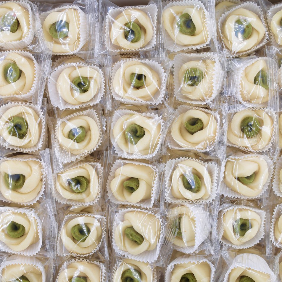 Shell-shaped almonds filled with luxurious pistachios, with a well-balanced taste that combines soft sweetness with a pronounced pistachio flavor. Each piece is individually wrapped to preserve texture and tenderness during storage and serving.