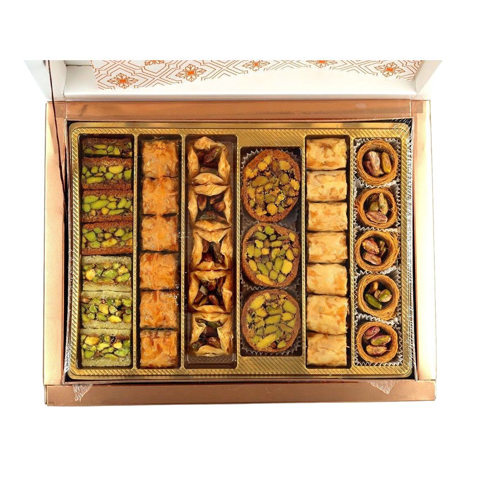 A luxurious experience of authentic oriental flavors, combining crisp dough filled with the finest pistachios and cashews, with a light layer of syrup that gives a balanced sweetness and melt-in-your-mouth texture. A luxurious box suitable for gifting and hospitality.