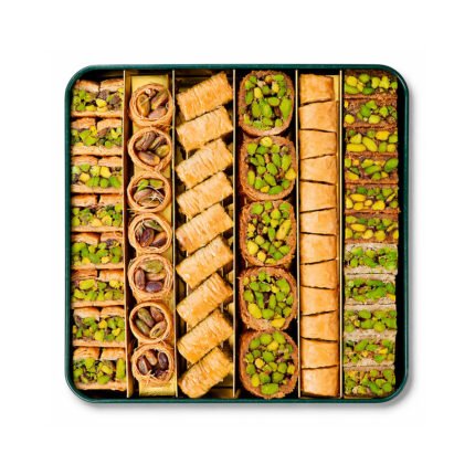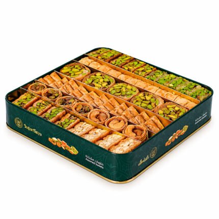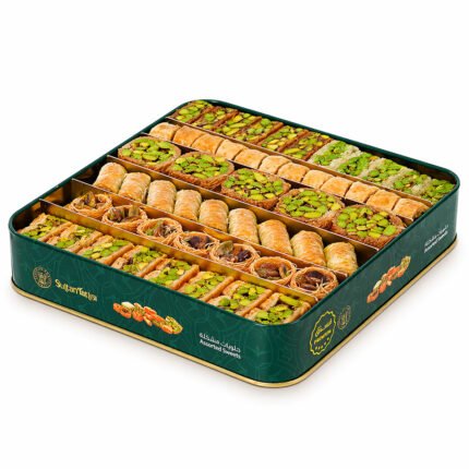 A luxurious assortment of crackers from Sanabel, featuring a variety of carefully roasted and baked pieces that give you a rich flavor and crunchy texture in every bite. This box combines multiple flavors such as pistachio and sesame to suit different tastes, making it an ideal choice for hospitality or as an elegant gift.