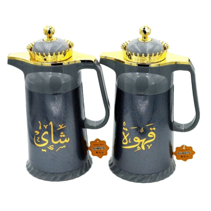 دلة قهوة زجاجية فاخرة بمقبض ذهبي وغطاء خشبي مع كريستال