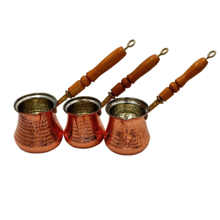 تحضير القهوة الشرقية الأصيلة يبدأ بدلة نحاسية تقليدية، مصنوعة يدويًا لتجمع بين الجودة العالية والمظهر التراثي. تتميز هذه الدلة بتوزيع مثالي للحرارة لضمان مذاق غني ومتوازن.