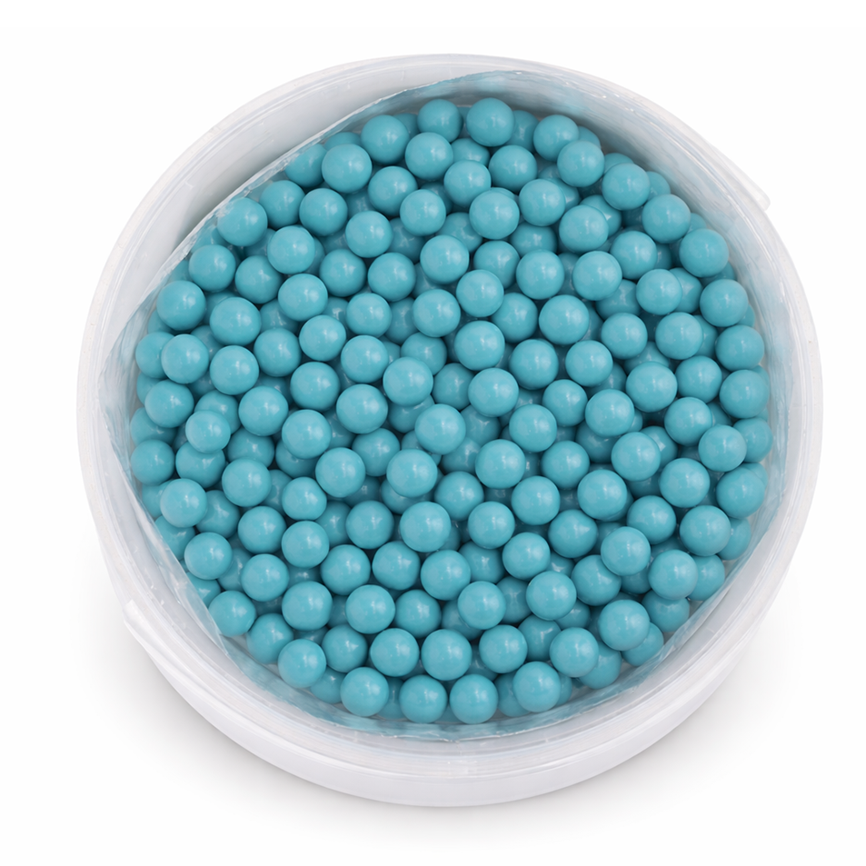 حبات بندق مغطاة بطبقة شوكولا ناعمة بلون أزرق جذاب، تعطي مظهراً مميزاً مع طعم غني يجمع بين القرمشة والنعومة في كل حبة.