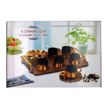 طقم فناجين قهوة مع صينية – لون أبيض مع نحاسي