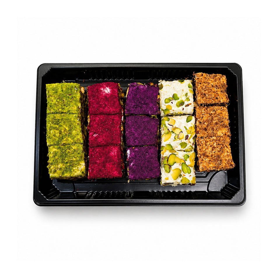 تشكيلة فاخرة من مكعبات الحلقوم التركي بنكهات مبتكرة وتغطيات غنية، تجمع بين الفستق الفاخر والفواكه الطبيعية والشوكولاتة البيضاء في تجربة مذاق مميزة.