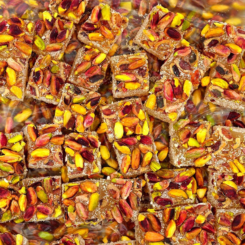 الشكل: مربعات ناعمة مغطاة بالفستق الحلبي