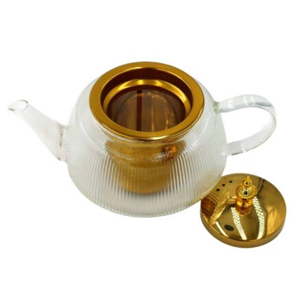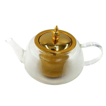 إبريق شاي زجاجي محجر بغطاء ذهبي – سعة 1.5 لتر