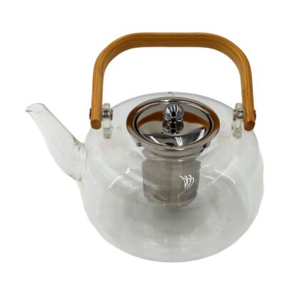 إبريق شاي زجاجي 1 لتر بغطاء خشبي