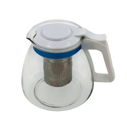 إبريق شاي زجاج مع مصفاة ستانلس ستيل وغطاء ابيض 1100مل