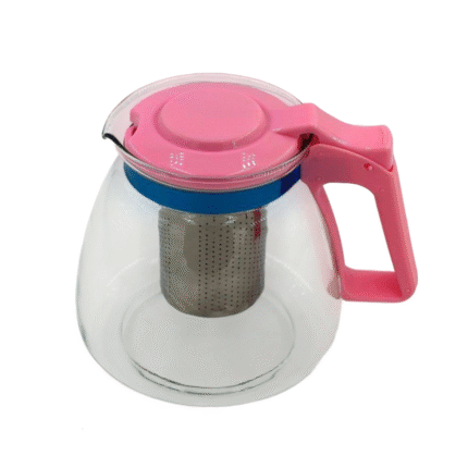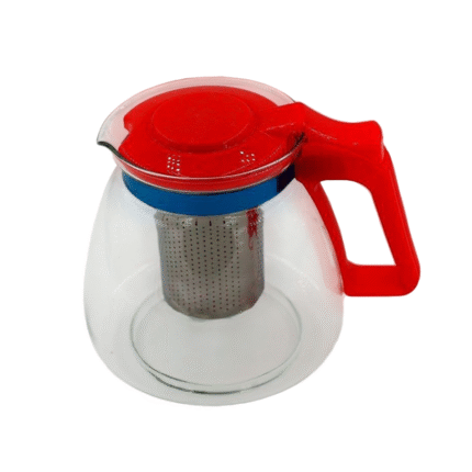 إبريق شاي زجاج مع مصفاة ستانلس ستيل وغطاء احمر 1100مل
