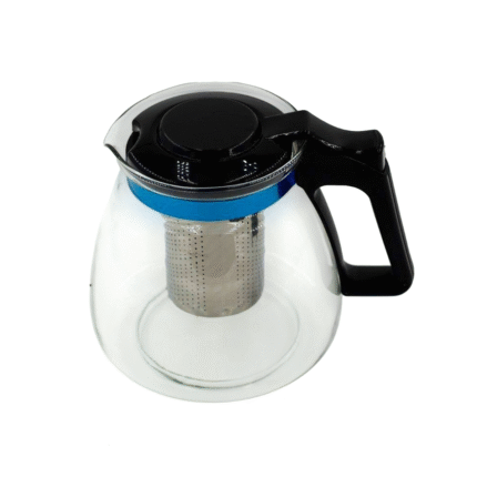 إبريق شاي زجاج مع مصفاة ستانلس ستيل وغطاء اسود 1100مل