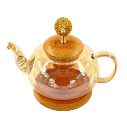 إبريق شاي زجاجي 1 لتر مع غطاء خشبي نحاسي وقاعدة خشبية