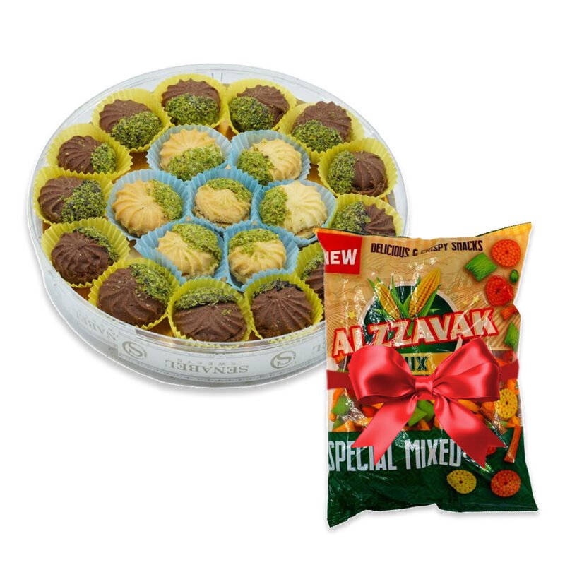 Blandad ros Petitfour + Blandade gourmetkex Present
