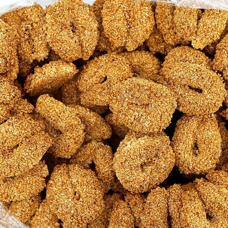 Njut av en autentisk smak av kulturarv med Irakisk Sesam Aloush-tårtaGjorda av en gyllene, krispig deg och toppade med ett generöst lager rostade sesamfrön. Med en härligt knaprig skorpa och en distinkt smak som återspeglar andan i det traditionella irakiska köket är dessa kakor ett perfekt val för familjesammankomster och evenemang.