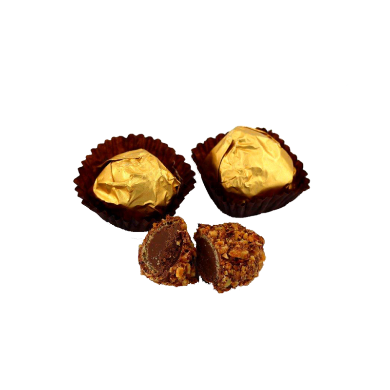 Dessa lyxiga chokladbitar är fyllda med rika smaker och en lätt krispig konsistens och är förpackade i elegant guldpapper, vilket gör dem lämpliga för alla tillfällen och vardaglig gästfrihet. Den nätta formen och den vackra glansen gör dem perfekta för servering av kaffe eller för att organisera presentförpackningar och tjänster.