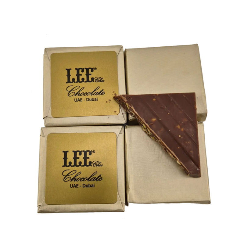 Ett lyxigt plagg från märket LEEEn kombination av ett mjukt kexlager med en rik pistagekrämfyllning, täckt av mjuk mjölkchoklad. En kombination som ger dig en lyxig upplevelse med en delikat konsistens och pistagernas djupa smak.