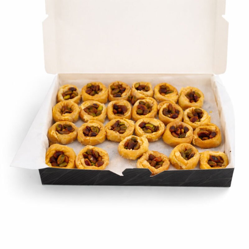 تقدم تشكيلة النواشف الفاخرة من حلويات أبو اللبن مجموعة متنوعة من أشهر الحلويات الشرقية الجافة التي تجمع بين القرمشة والنكهة التقليدية المحببة. تضم هذه التشكيلة أصنافًا مختارة بعناية مثل البرازق والغريبة والمعمول بعجوة وأصابع التمر، لتكون خيارًا مثاليًا للضيافة اليومية أو للتقديم مع القهوة العربية والشاي.