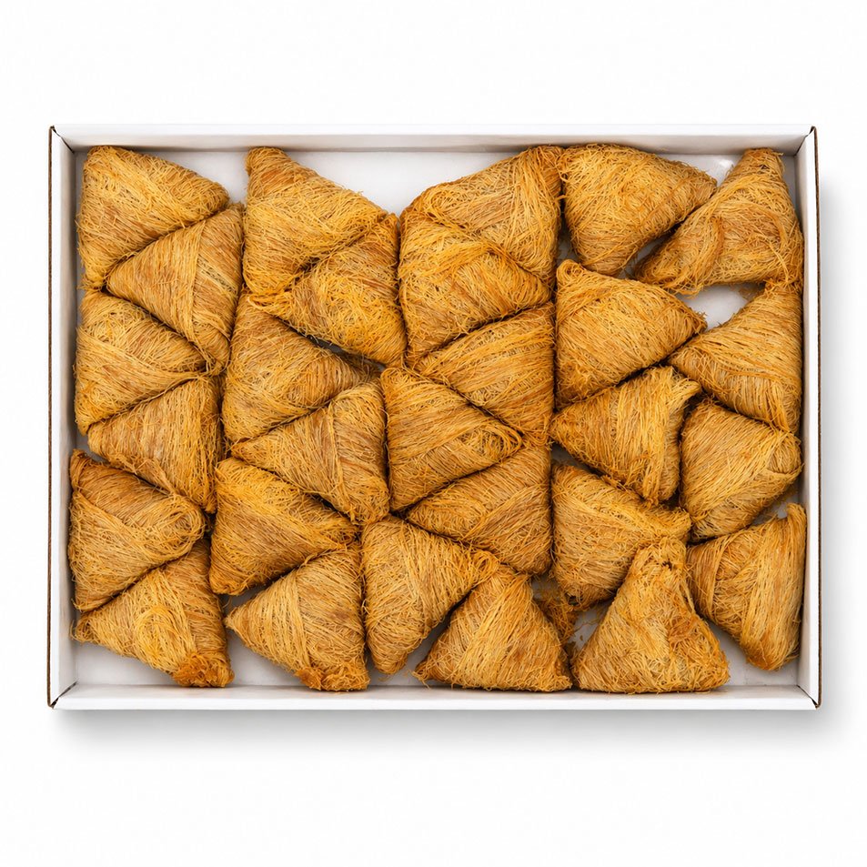 صينية فاخرة من الفيصلية المحشوة بالفستق، تتميز بشكلها الهرمي المميز وقوامها المقرمش مع حشوة غنية تعطي طعمًا شرقيًا أصيلًا.