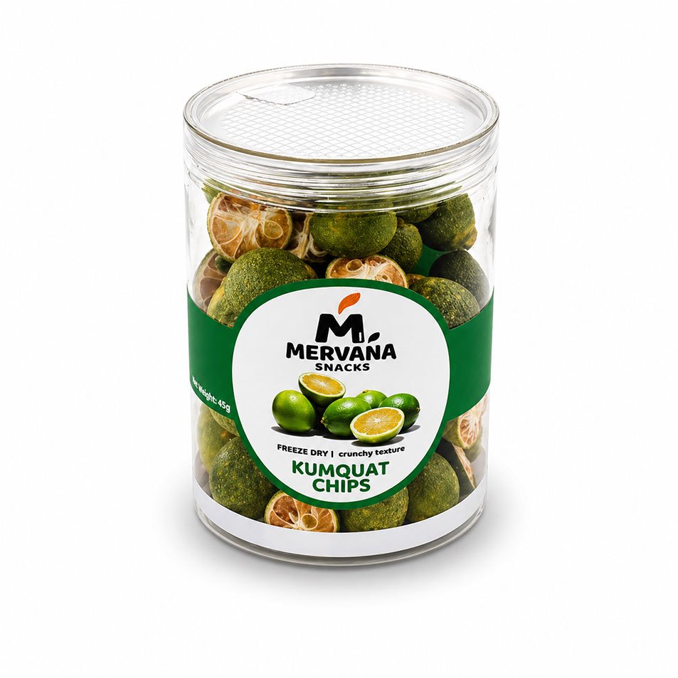سناك طبيعي بنكهة الكمكوات المنعشة والمتوازنة بين الحلاوة والحموضة، مجفف بتقنية التجميد للحفاظ على الطعم والقيمة الغذائية مع قوام مقرمش وخفيف.