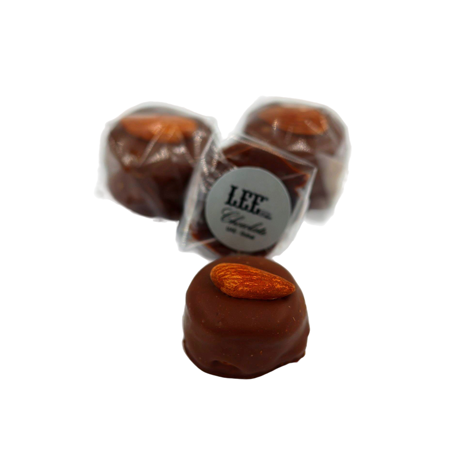 En lyxig delikatess som kombinerar krispig knafeh och läcker grädde inuti ett lager av mjuk mjölkchoklad, med en hel mandel som ger en rik smak och en touch av lyx.