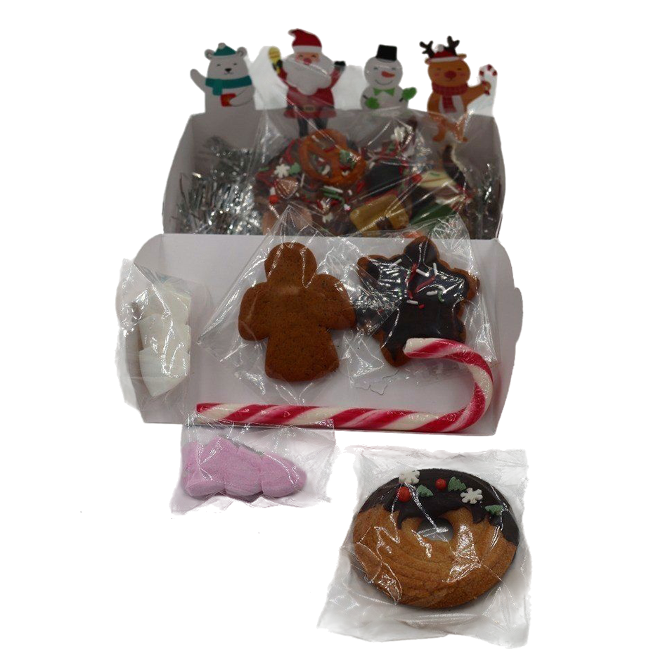 En vackert designad Eid-presentask i festliga färger, innehållande en mängd olika inslagna sötsaker för en njutbar upplevelse som passar feststämningen. Asken har ett elegant tygband och festliga karaktärsdesigner som ger den en distinkt touch, vilket gör presenten tilltalande för både vuxna och barn.
