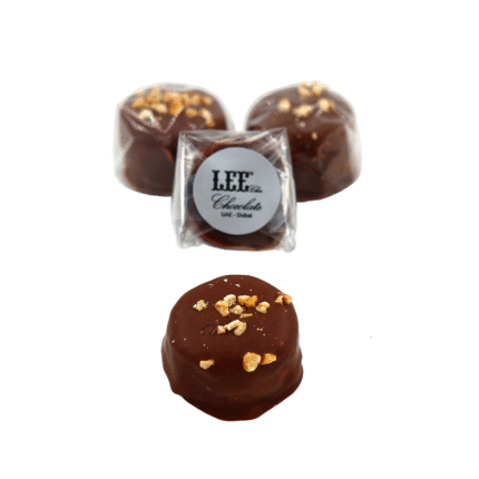 En lyxig delikatess som kombinerar flera lager av rika texturer: krispigt kex i botten, mjuk kräm i mitten och rostad knafeh som ger en lätt krispighet, allt omslutet av ett lager mjuk mjölkchoklad med strösslade nötter på toppen.